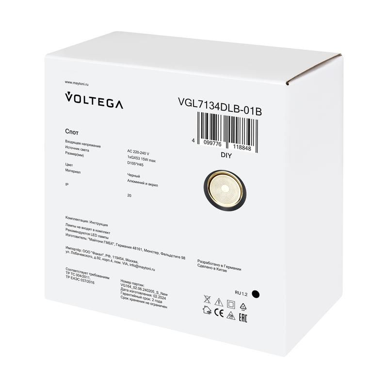 Читать все статьиСветильник Zoro 15Вт GX53х1 IP20 спот Voltega VGL7134DLB-01B