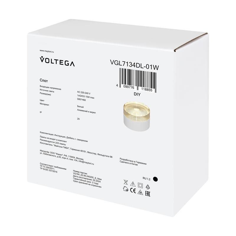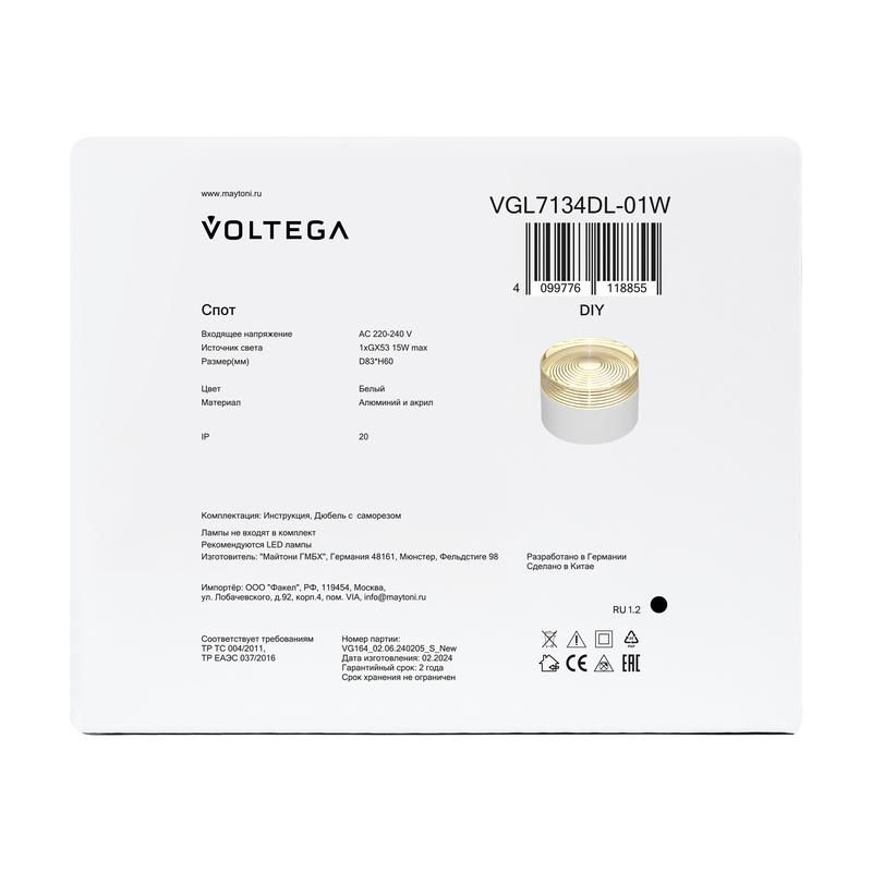 Читать все статьиСветильник Zoro 15Вт GX53х1 IP20 спот Voltega VGL7134DL-01W